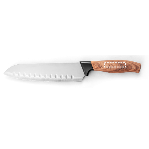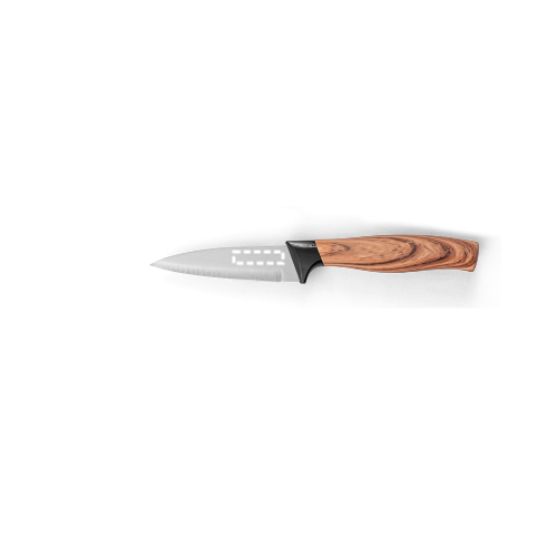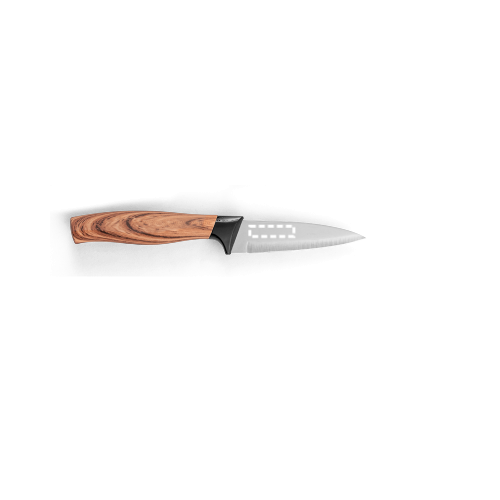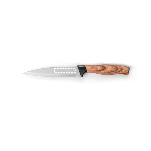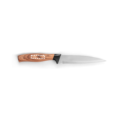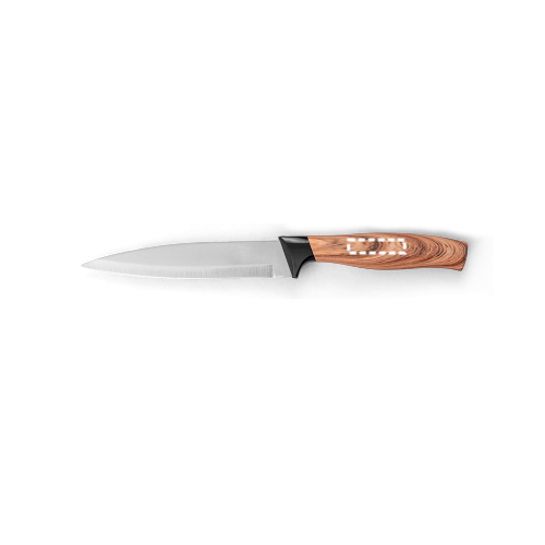 Set aus 3 Küchenmessern mit Klinge aus Edelstahl und ergonomischem Griff aus Kunststoff mit Holzoptik. Das Set besteht aus: 1 Santoku-Messer, 1 Allzweckmesser und 1 Schälmesser. Wird in einer Geschenkbox aus Kraftpapier geliefert. Schachtel: 335 x 145 x 28 mm